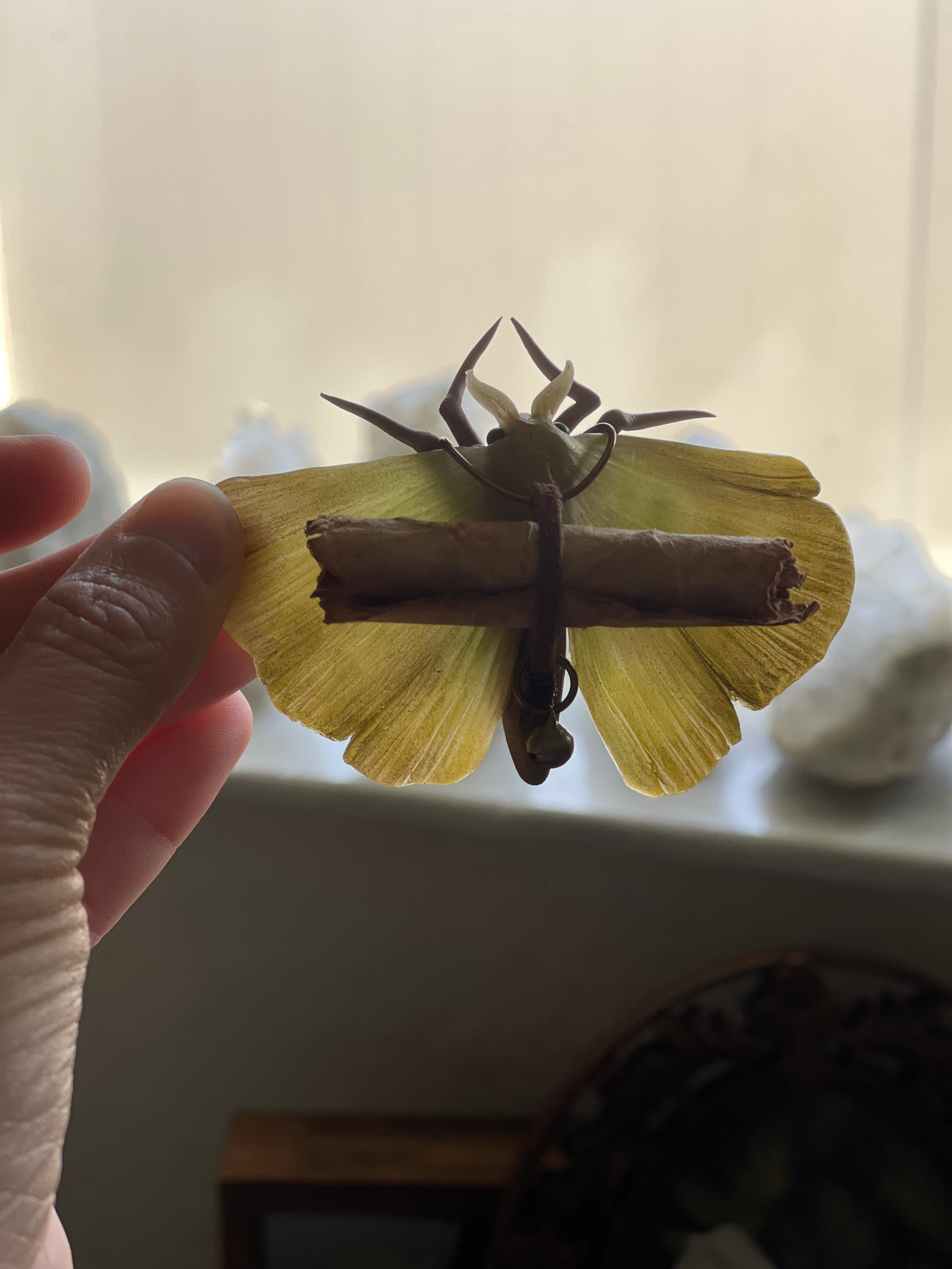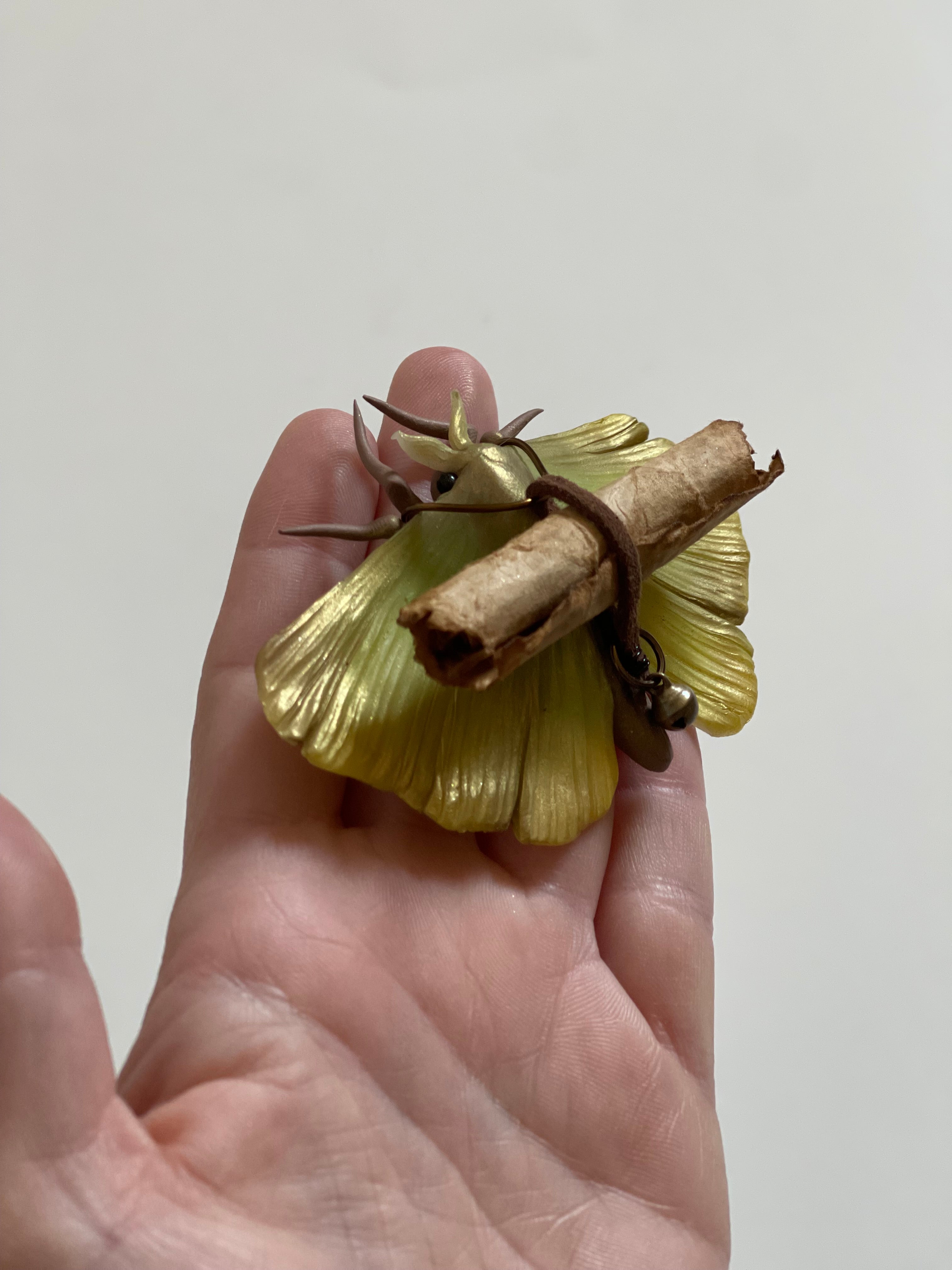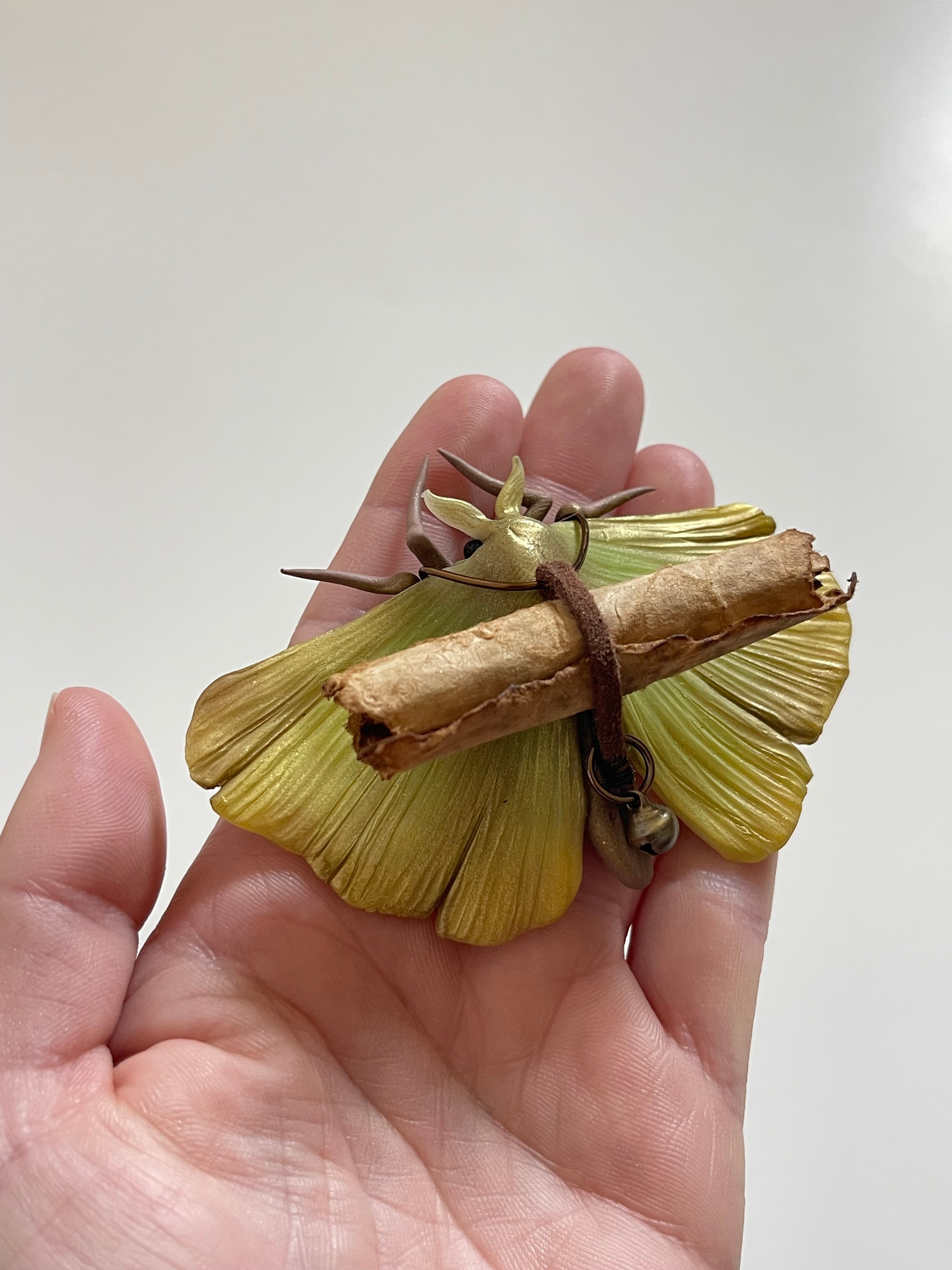 These sweet little moths come to those who might need them. A message, a smile, a thought. They are hand sculpted with clay and colored using natural pigments. They each have a scroll containing a simple lyric of a song that makes me smile.